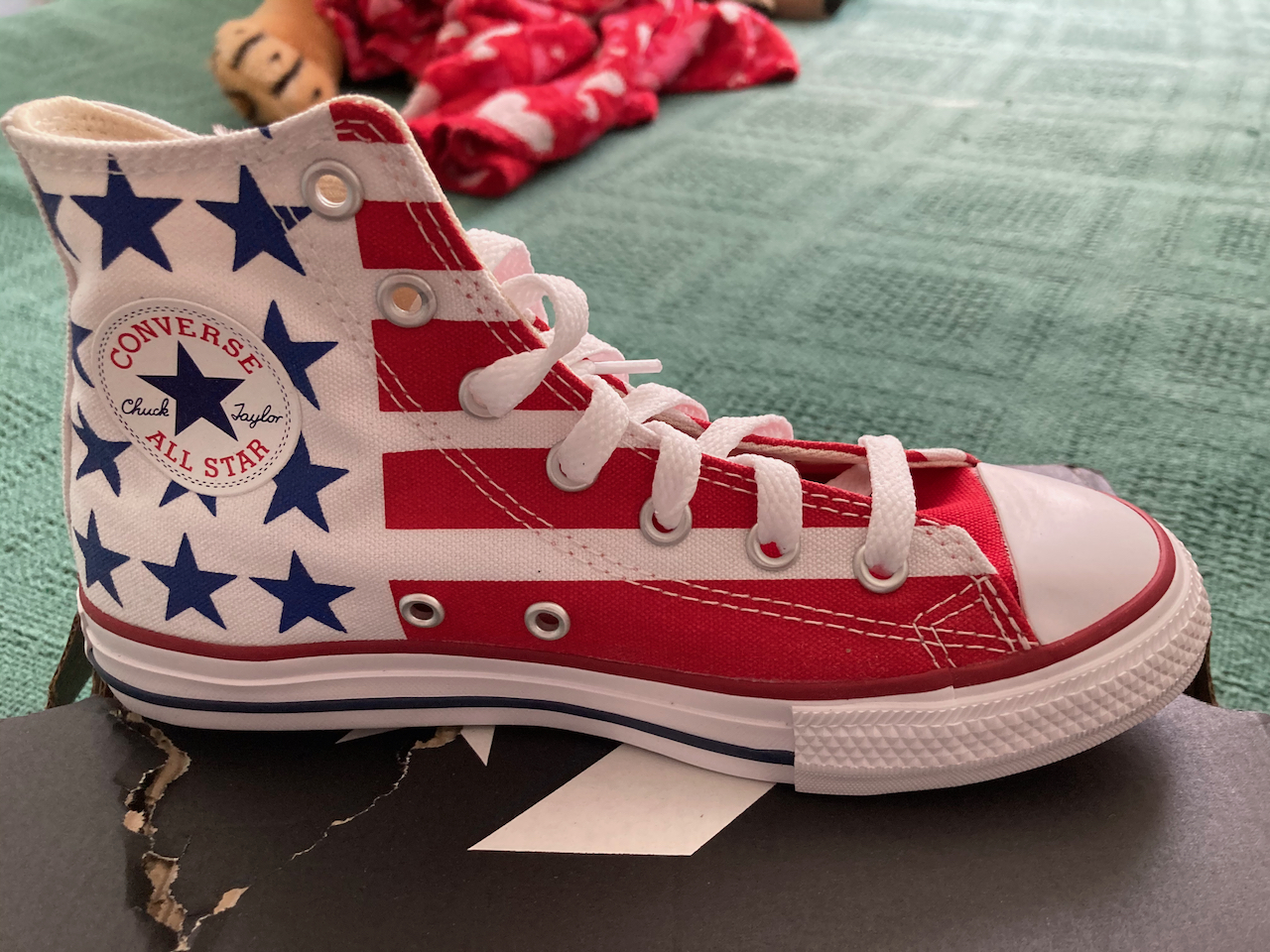 The girls haven’t been back to school for an entire year. We left the Wednesday before spring break 2020 started at they haven’t set foot in a school since then. In that year, Mara has struggled a bit. She’s in 3rd grade and needs a bit more direction, specifically from a teacher. I think remote learning is too difficult for most 8-year-olds. So, a year ago we left for Spring Break, came home to a pandemic and the children haven’t been to school since. A year later, Spring Break is coming to an end, and Elise and I decided we’re sending Mara back to in-person school tomorrow. Here’s to new beginnings. To celebrate, we ordered her a patriotic pair of Converse that she excitedly picked out.